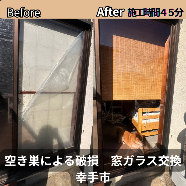 【幸手市】空き巣被害による窓ガラス破損を即日交換|旅行中の侵入被害に対応
