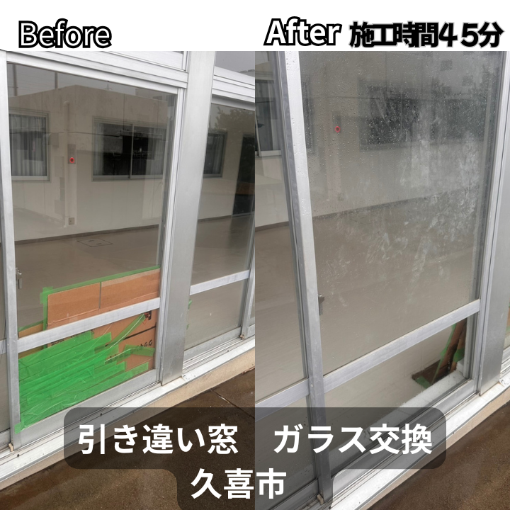 熊谷市にて、引き違い窓の型ガラス(4mm)交換をご依頼いただきました。