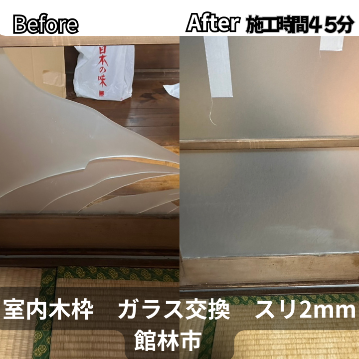 館林市にて、室内のスリガラス(2mm)交換をご依頼いただきました。