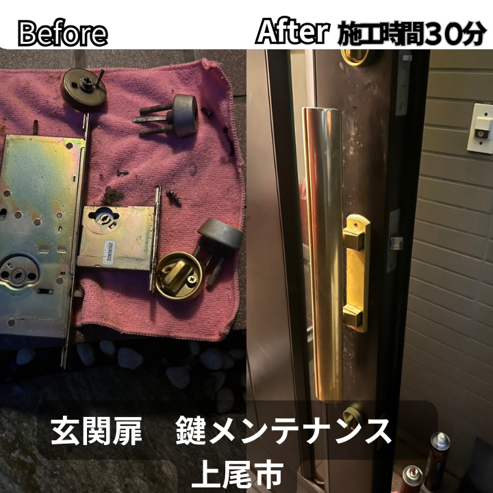 【上尾市】玄関ドアの鍵メンテナンス|抜き差し不良と回らない症状を30分で改善✨
