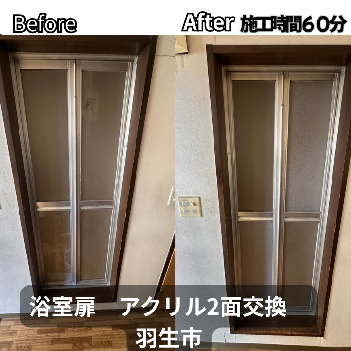 羽生市にて、浴室扉のアクリル2面交換作業をご依頼いただきました!