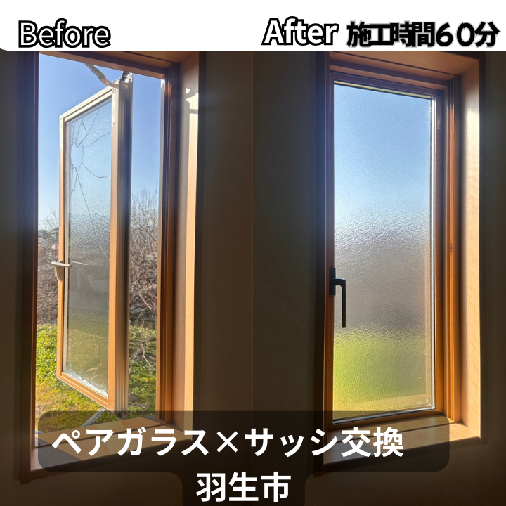 羽生市にて、ペアガラスとサッシの同時交換作業をご依頼いただきました!