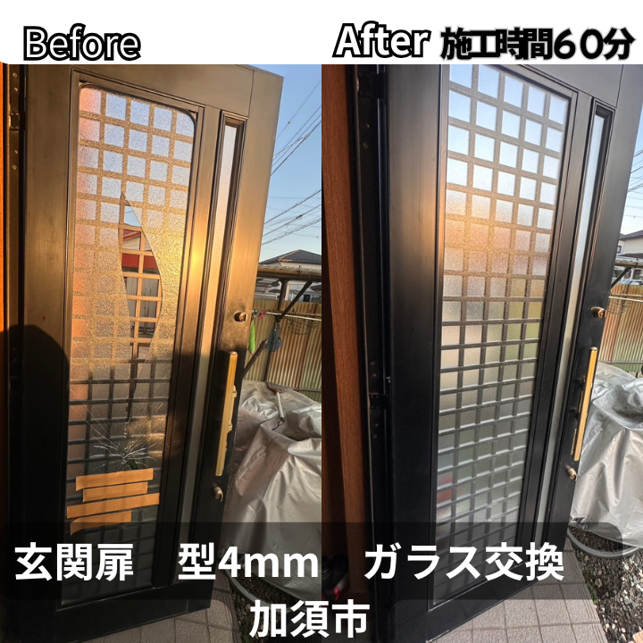 【加須市】玄関扉くもりガラス4mmを即日交換|入電から75分で完了✨