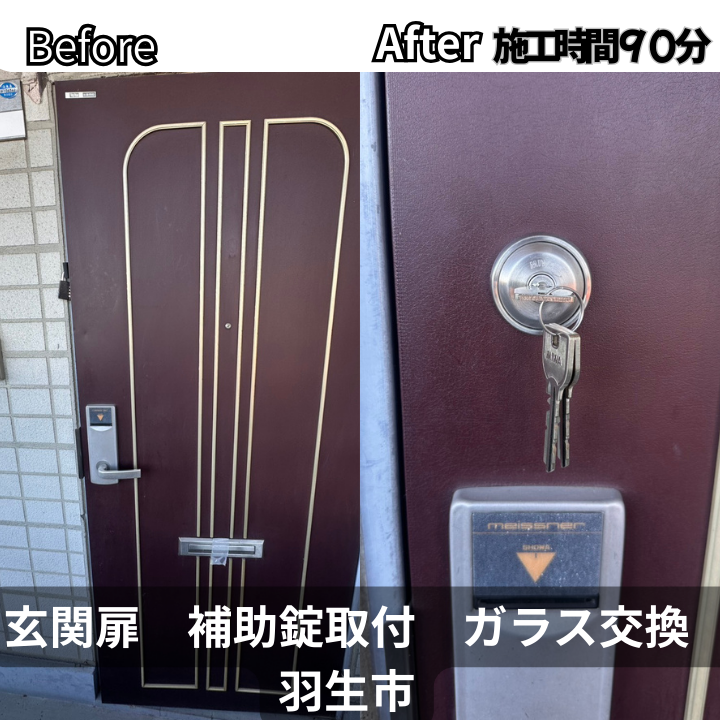 羽生市にて、玄関扉への補助錠(新規取付)工事をご依頼いただきました!