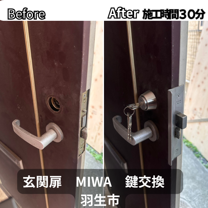 羽生市にて、賃貸物件のMIWAシリンダー鍵交換をご依頼いただきました!