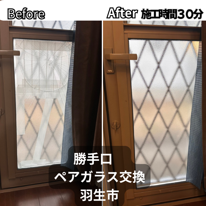 加須市にて、玄関扉のくもりガラス(型ガラス4mm)交換作業をご依頼いただきました!