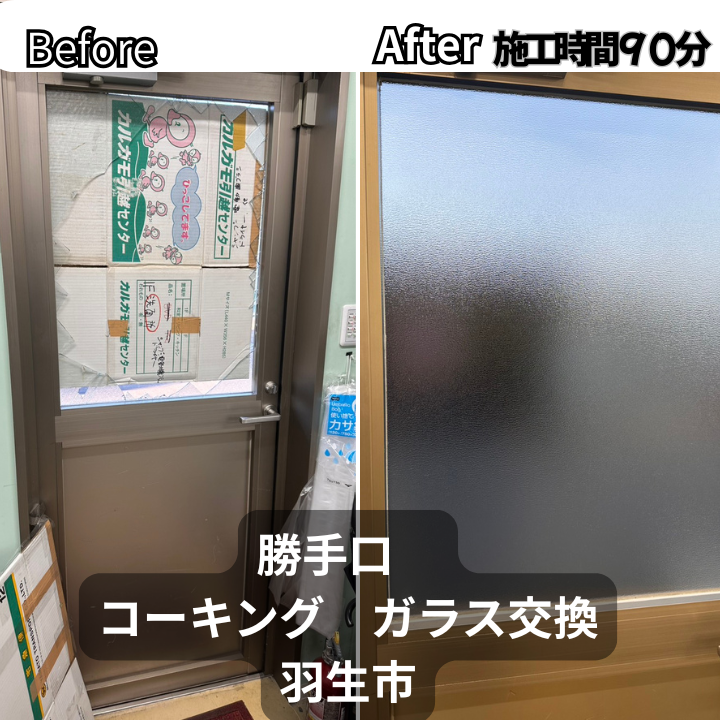 【羽生市】勝手口ガラス交換|強風による破損を即日対応(型4mm・コーキング施工)✨