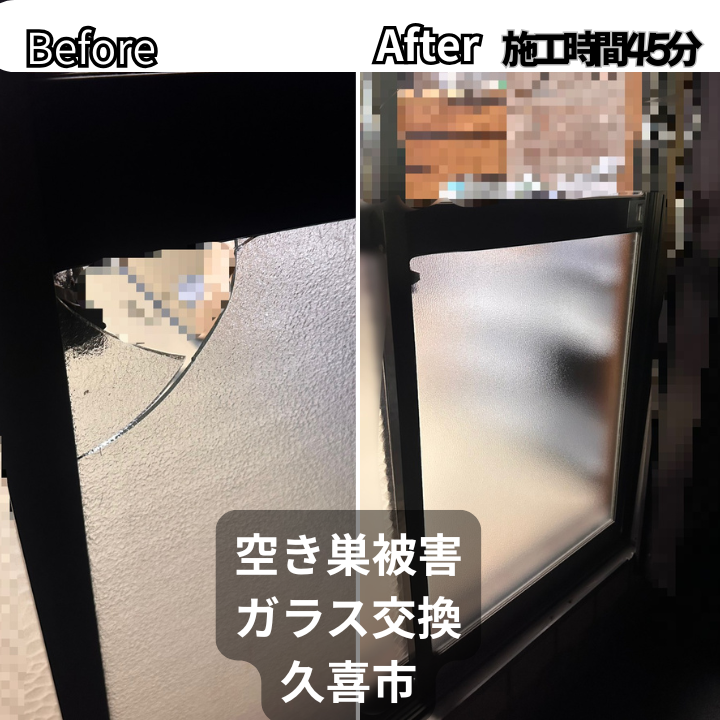 【久喜市】空き巣被害による窓ガラス破損を即日交換|防犯対策もご提案しました
