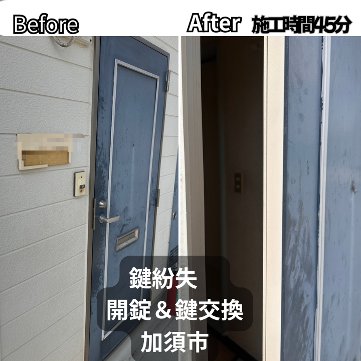 久喜市にて、鍵紛失による玄関開錠および鍵交換のご依頼をいただきました!