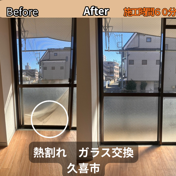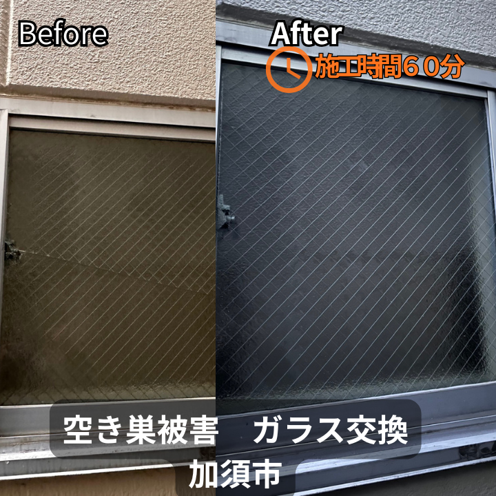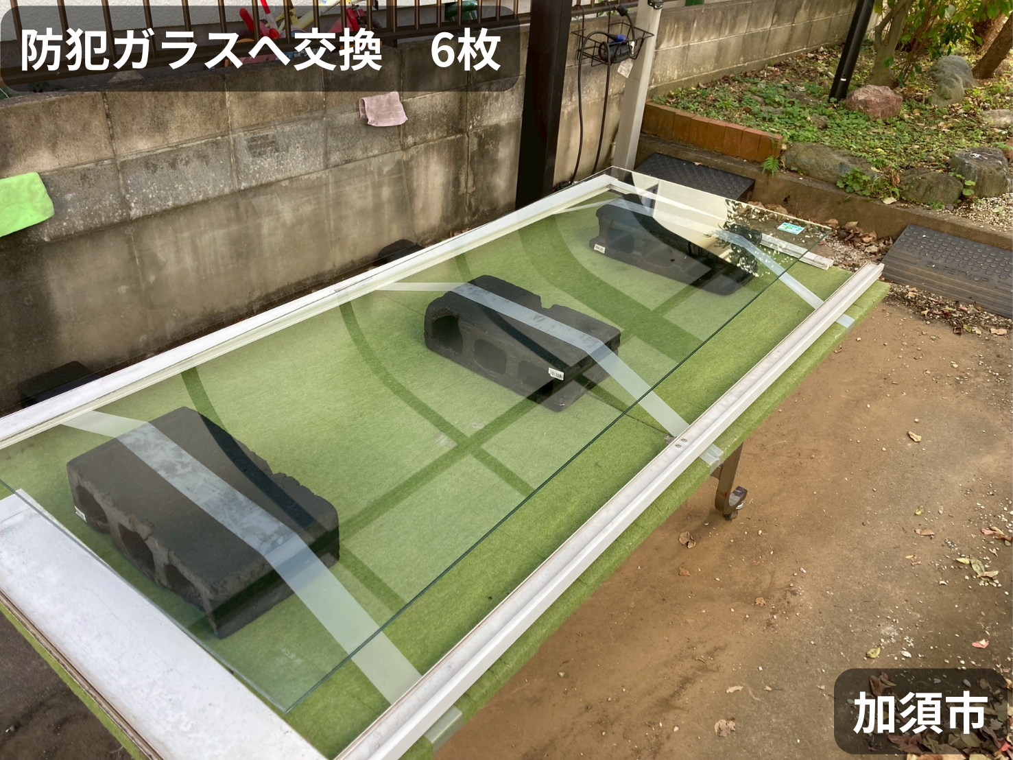 【加須市】大きなガラスが割れた際の応急処置と交換対応事例