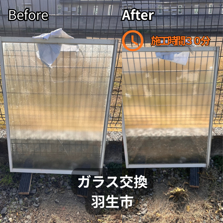 【羽生市】型ガラス4mmの熱割れによるガラス交換を行いました|ヒビが広がる前に早めの対応を