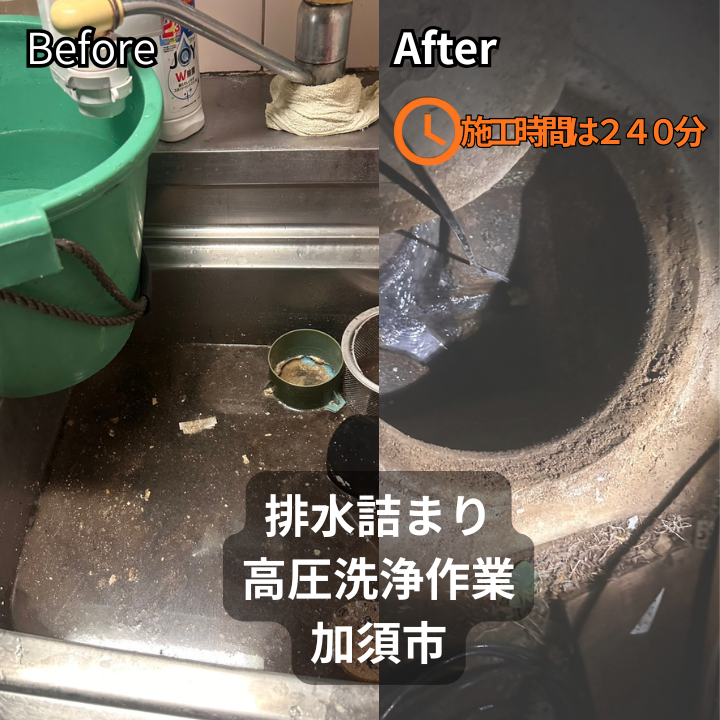 加須市にて、キッチン排水の詰まりトラブルに対応いたしました。