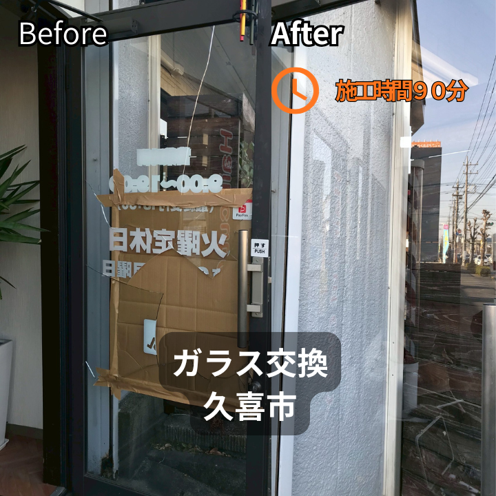 今回は通常のガラス交換作業で、施工時間は約90分ほどでした。
