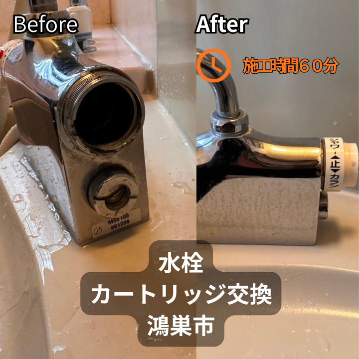 【鴻巣市】サーモスタット水栓の水が止まらないトラブル|カートリッジ交換で解決