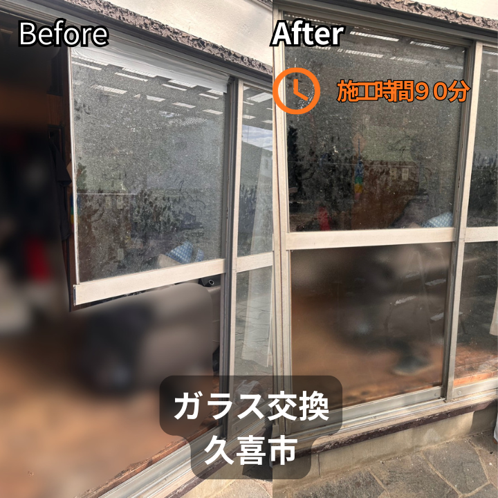 【久喜市】猫がガラスに突っ込んで破損…|ハリ落ちのサッシでも対応可!ガラス交換施工