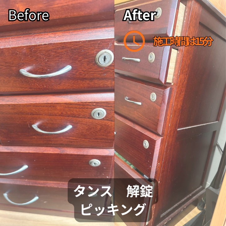 【古河市】タンスの鍵をピッキング解錠|鍵紛失でも即日対応!