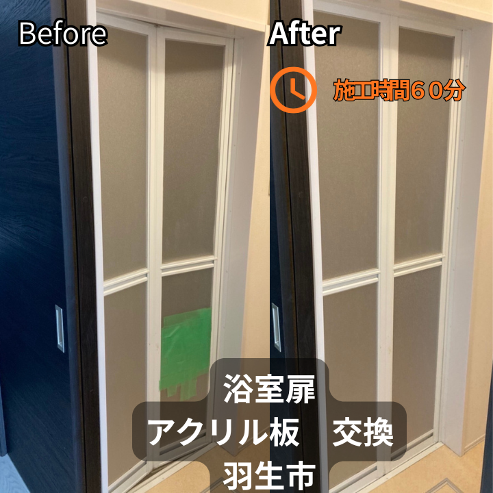 羽生市にて浴室扉のアクリル交換を行いました