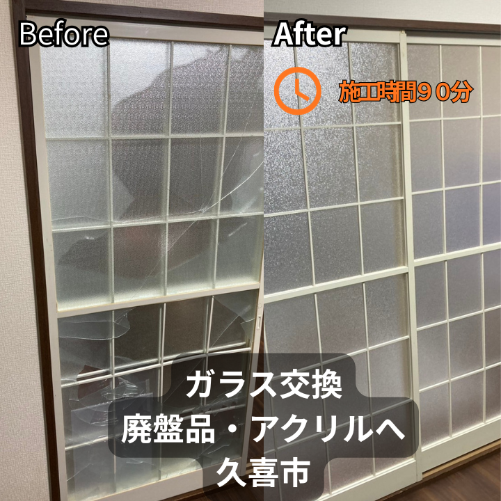 【久喜市】廃盤ガラスをアクリルで代替施工|ガラス交換工事