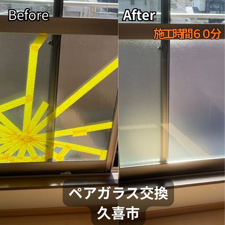久喜市にてペアガラス破損の交換対応を行いました。