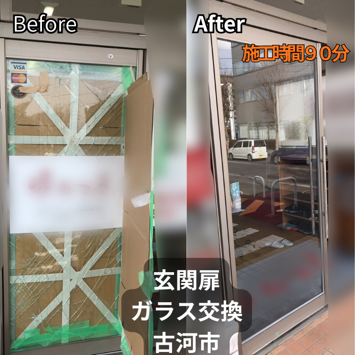 【古河市】玄関扉のガラス破損を交換しました|強風でバキバキに…