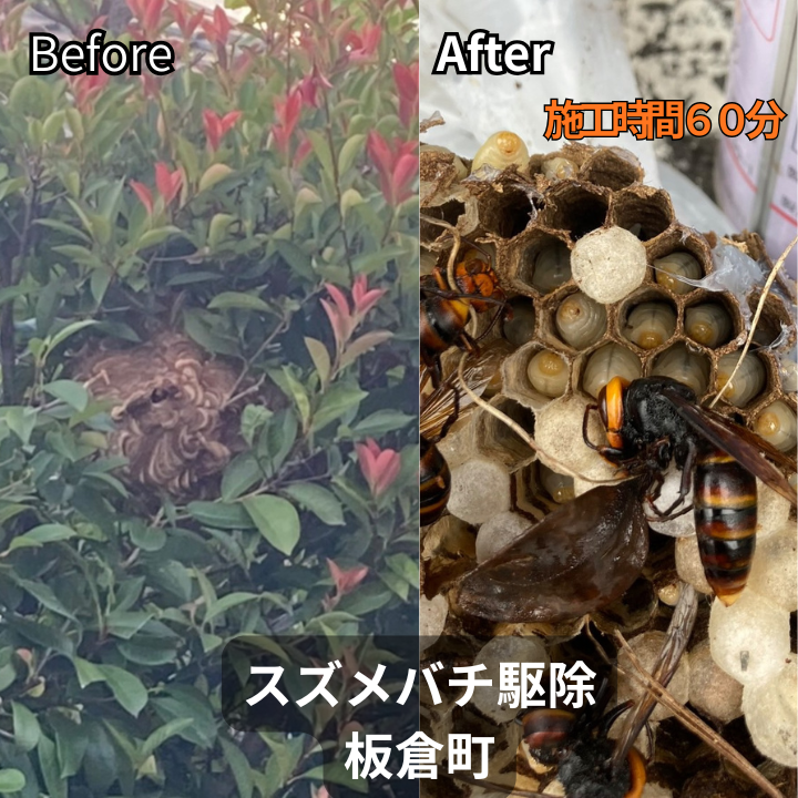 【板倉町】スズメバチ駆除|垣根にできた大きな巣を即日対応しました!