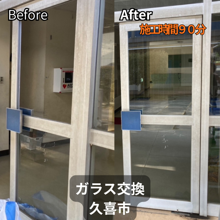 枠の歪みもなく問題なく交換できる状態でしたので、その場でお見積りをご提示しご依頼へ。