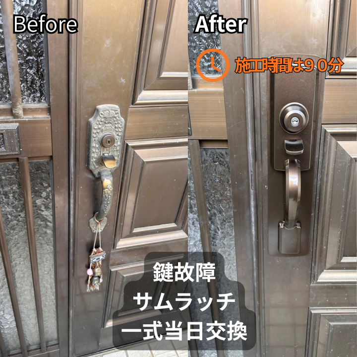 【宮代町】玄関の扉が鍵故障して開かない!開錠&当日一式交換の事例