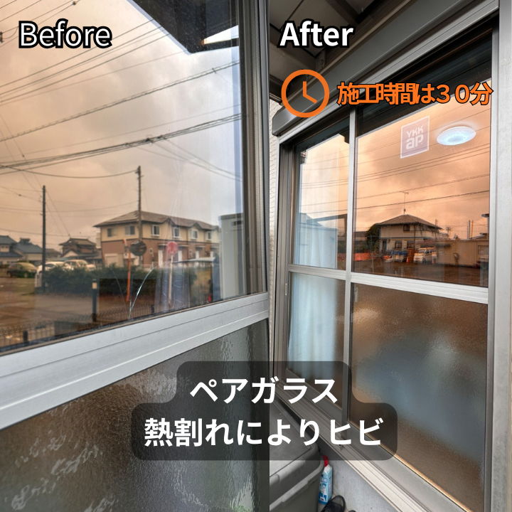 【古河市】熱割れによるヒビ|ペアガラスの交換の流れを紹介